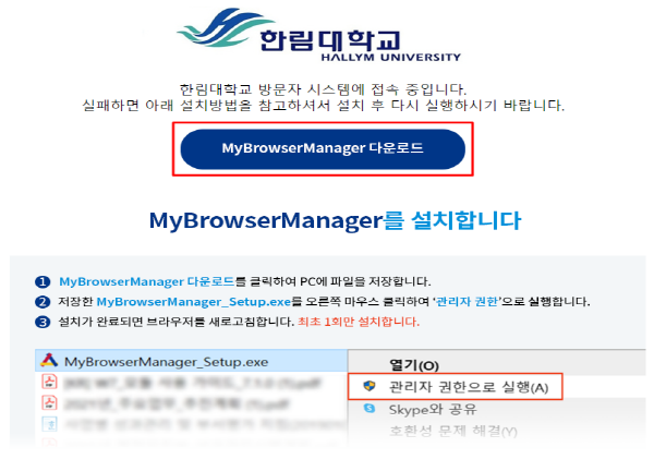 * 최초 접속 시 원활한 이용을 위한 프로그램 설치 필요(설치 후 크롬, 엣지 모두 이용 가능)