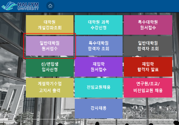 * 접속 후 일반대학원 원서접수 클릭