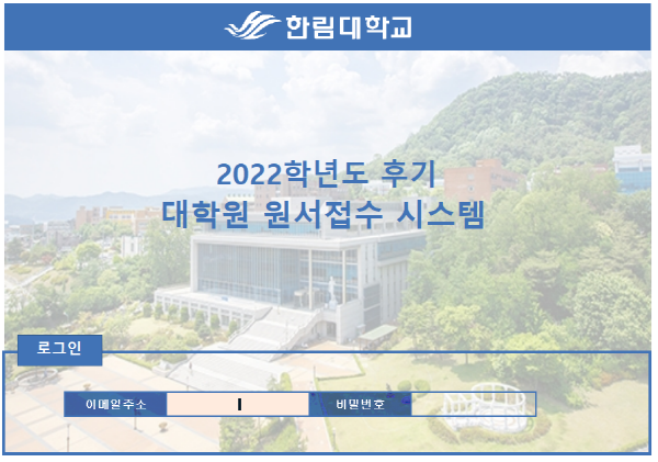 - 추후 합격자 조회 및 장학 신청 시 해당 로그인 정보를 이용하니 이메일주소와 비밀번호를 다시 한 번 확인해주시길 바랍니다. 로그인 버튼은 원서접수 기간에만 활성화됩니다.